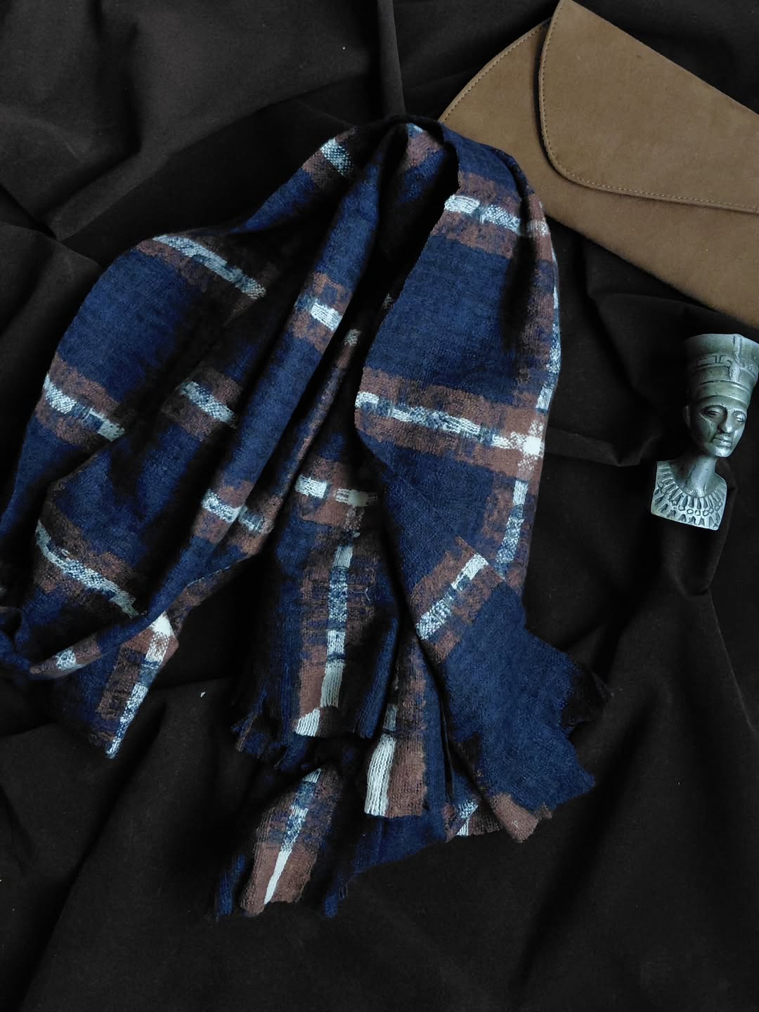 شال موهر چهارخانه مینیمال، جنس پارچه گرم و بسیار لطیف، بادوام و بدون پرزشدگی