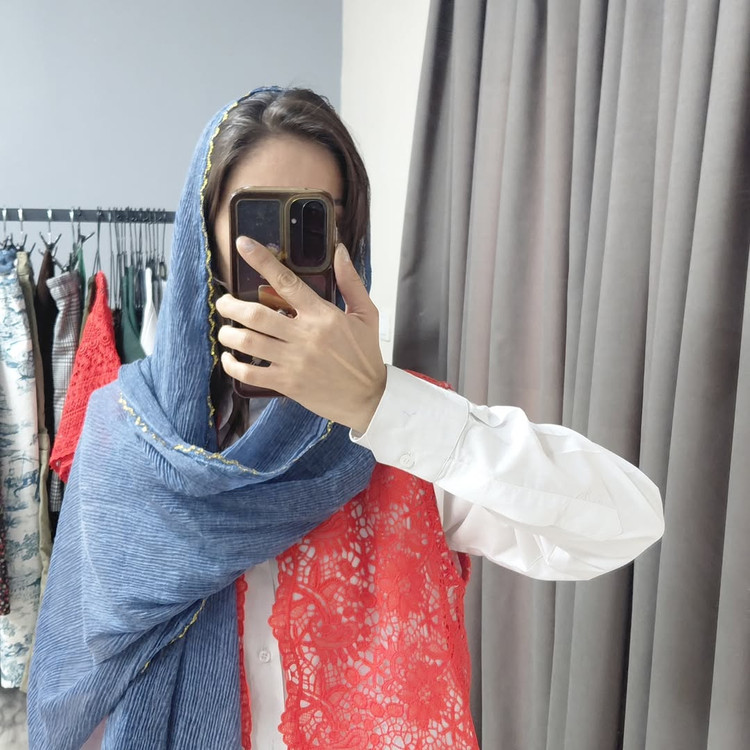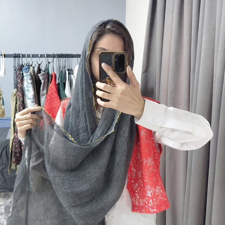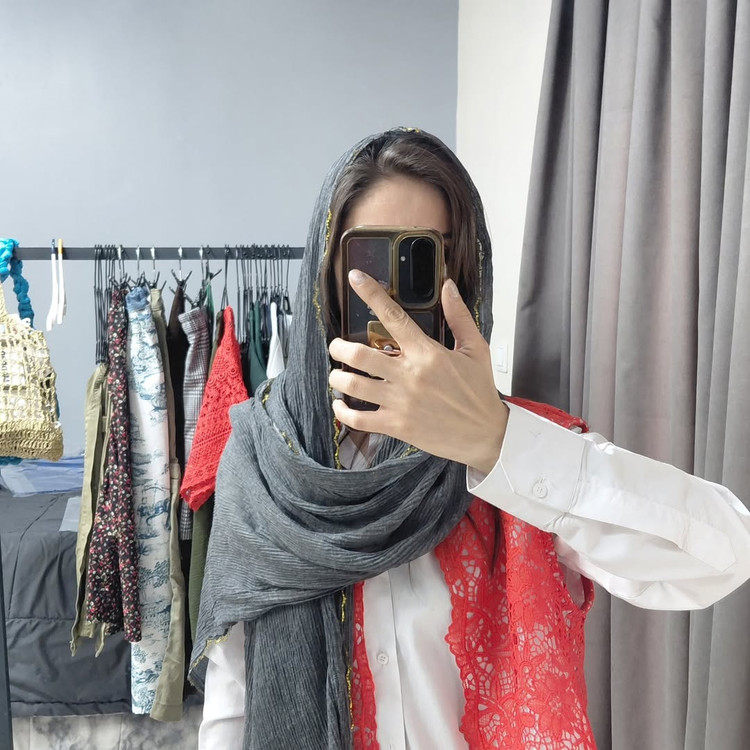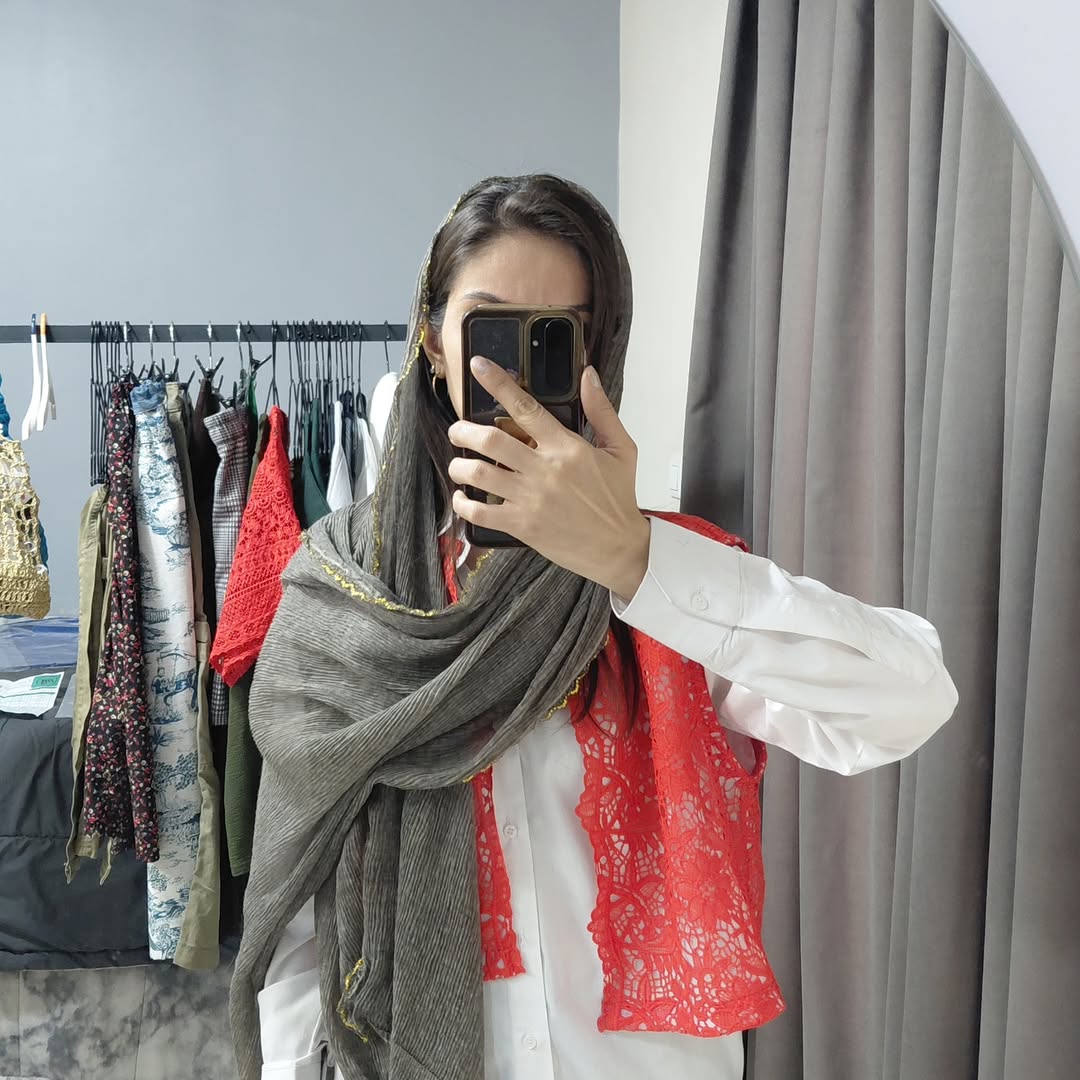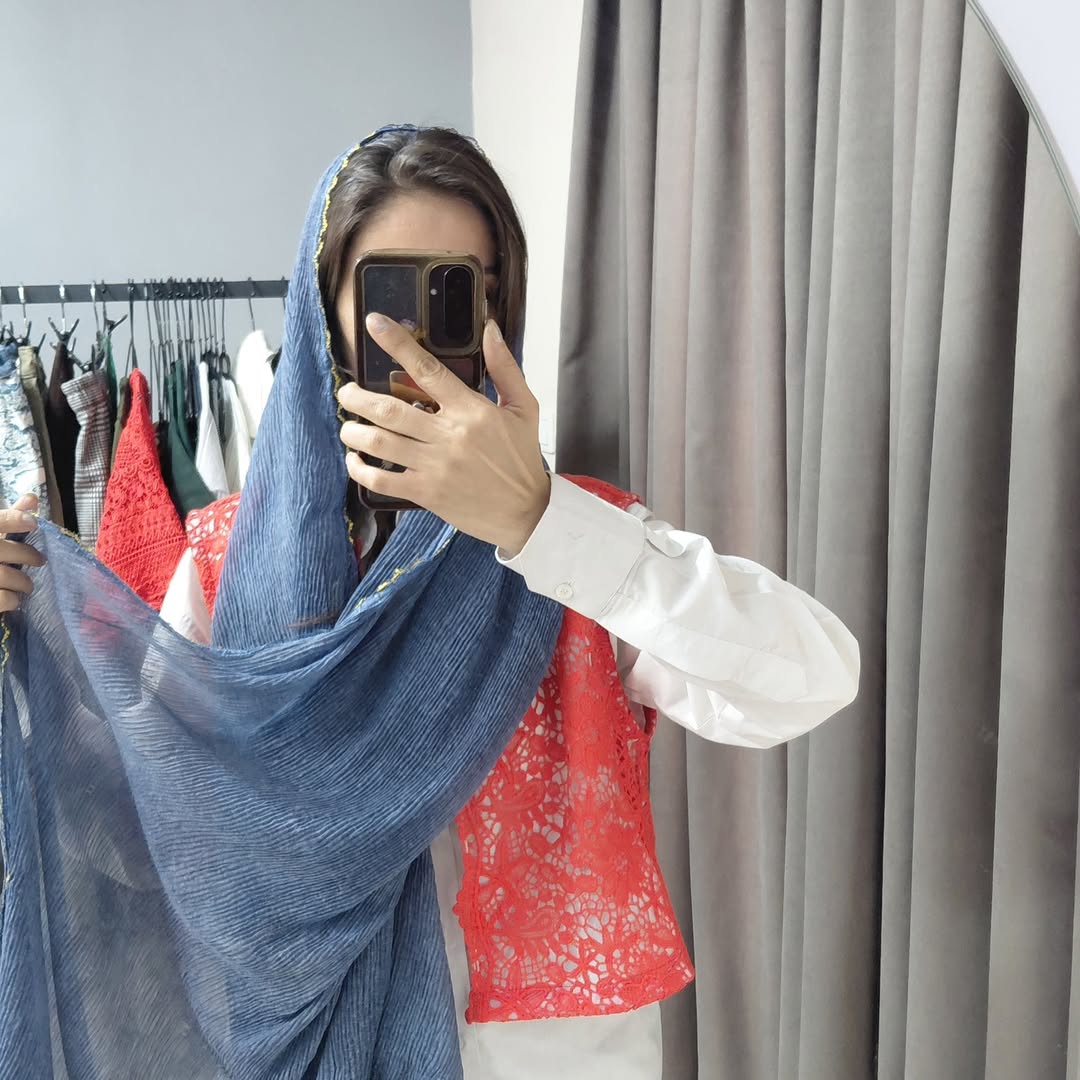شال پلیسه لبه تور دوزی، سبک، نرم و ایست زیبا روی سر، مناسب مهمانی و استفادهی روزانه