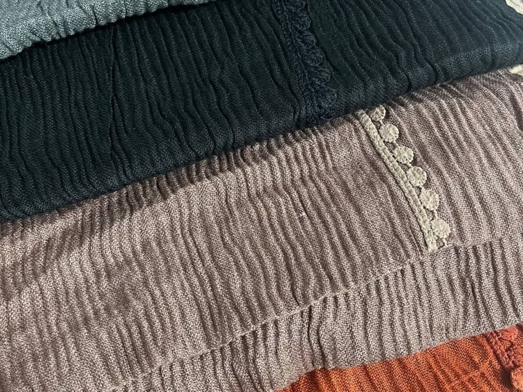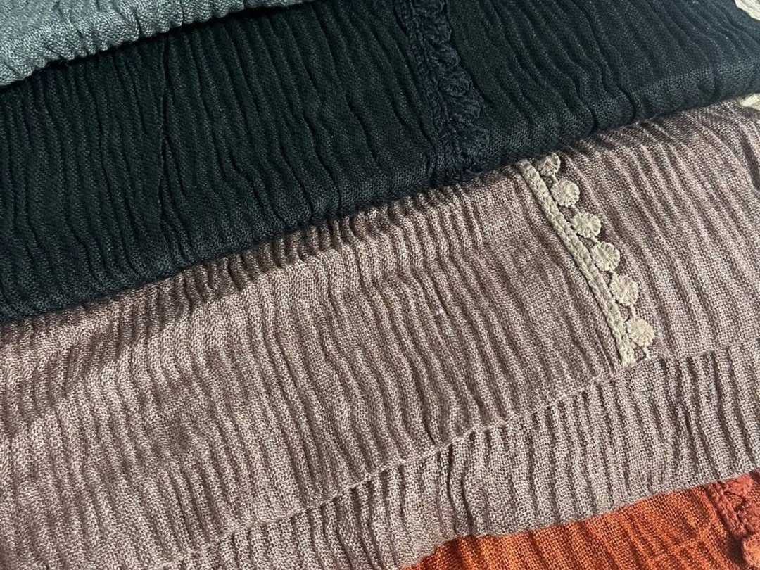 شال پلیسه، لبه نواردوزی گیپور ظریف، جنس نرم و لطیف، مناسب استفادهی روزانه